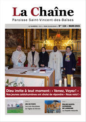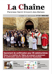 L’origine de « La Chaîne » remonte à l’année 1952, l’Abbé Berrotte crée un journal interparoissial pour faire le lien entre les diverses paroisses d’alors, les articles étaient écrits par les prêtres de ces paroisses. En 2022 pour suivre les nouvelles régles de la poste, l'envoi avec les bandes a disparu, et pour éviter le platique ou le sur-emballage, nous avons opté pour l'impression directe des adresses sur la première page du journal. |