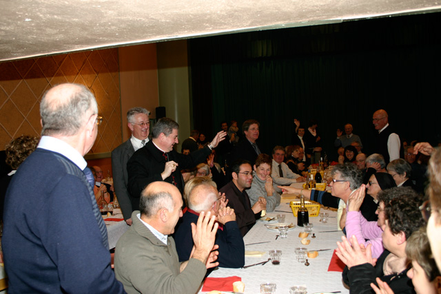 ...qui est suivie d'un "verre de l'amitié" à la salle Saint-girons toute proche, ou notre évêque est accueilli par les jeunes de l'aumônerie |