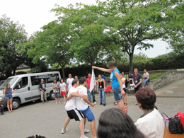 | L'arrivée des jeunes à Monein, le vendredi 12 aout | Le lendemain à Lacommande... | ... temps de prière... | ... et d'échange à l'église... |