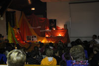 | ...Ensuite c'est le début de la veillée... | ....veillée de prière avec les jeunes... | Une présentation des activités de l'aumônerie... | ...par les jeunes de l'aumonerie. |