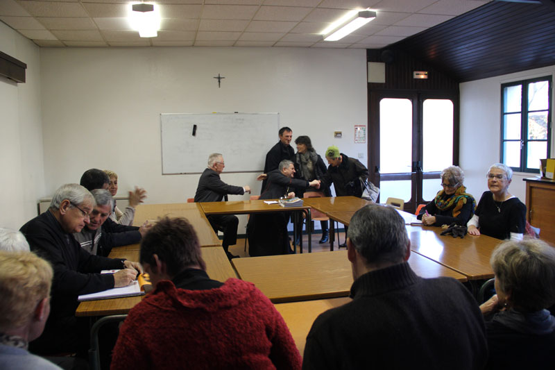 | Rencontre des divers mouvements... | ... MCR, CMR, ACI, CCFD, ... | ...Secours Catholique, Hospitalité Basco Béarnaise... | ...chacun a pu s'exprimer devant Monseigneur Aillet.. |